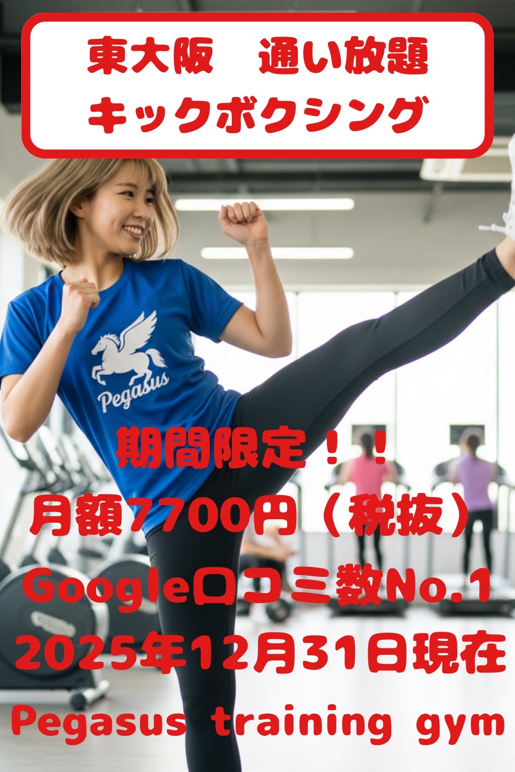 キーワード:東大阪/東大阪キックボクシング/キックボクシング/ペガサストレーニングジム/パーソナル/ジム/美容/ダイエット/トレーニング/八尾市/東大阪市/河内山本/八戸ノ里
