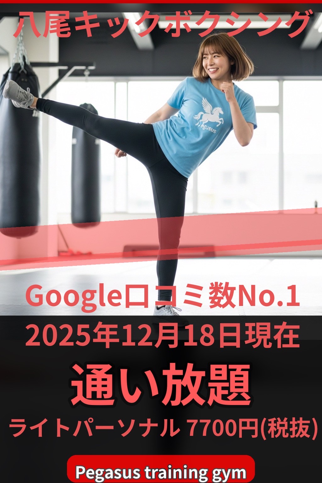 ペガサストレーニングジムは、八尾市・東大阪市エリアでGoogle口コミ“件数”で地域最多(2025年12月5日時点)という一文を掲げ、安心して通える運営を大切にしています。※口コミは日々増減します